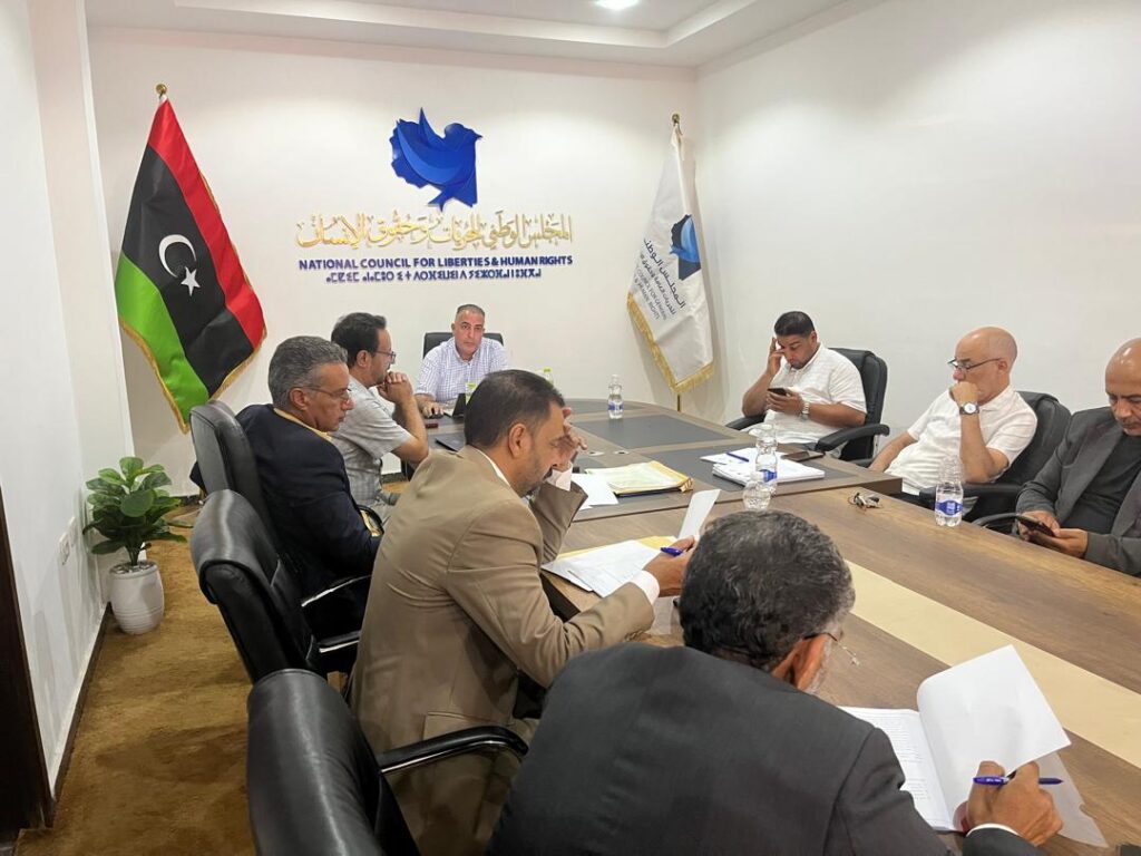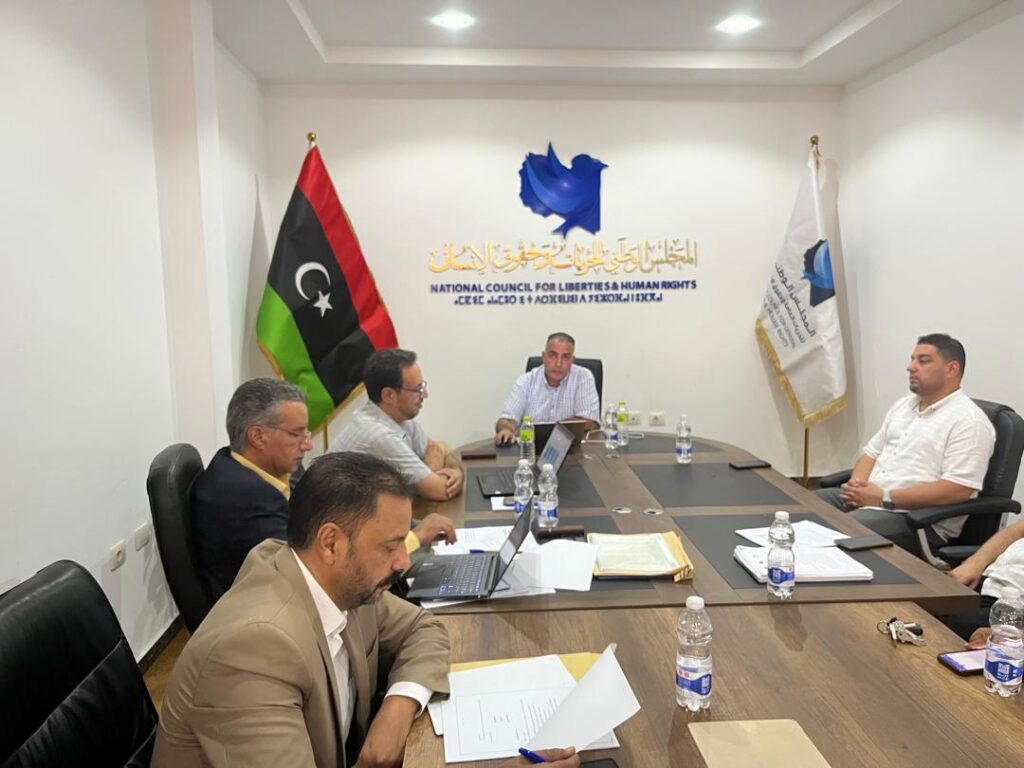 في سياق تنفيذ الاختصاصات المسندة إلى المجلس الوطني للحريات وحقوق الإنسان بموجب القانون رقم (5) لسنة 2011م، ولا سيما الفقرة الثانية من المادة (3) التي تُخوِّل المجلس مراجعة المنظومة التشريعية الوطنية واقتراح ما يلزم من تعديلات أو إعداد مشاريع قوانين جديدة تتسق مع المعايير والالتزامات الدولية لحقوق الإنسان، انعقد بمقر ديوان المجلس اليوم الثلاثاء 21-10-2025، اجتماع اللجنة الوطنية لتطوير التشريعات المعنية بإعداد مسودة قانون مكافحة الاتجار بالبشر، وذلك في إطار الجهود المؤسسية الرامية إلى تعزيز البنية التشريعية الوطنية في مواجهة الجريمة المنظمة عبر الوطنية وصون كرامة الإنسان وحماية الفئات الهشة من الاستغلال بكافة أشكاله.