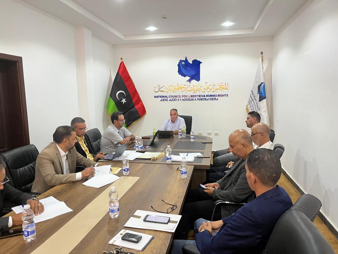 في سياق تنفيذ الاختصاصات المسندة إلى المجلس الوطني للحريات وحقوق الإنسان بموجب القانون رقم (5) لسنة 2011م، ولا سيما الفقرة الثانية من المادة (3) التي تُخوِّل المجلس مراجعة المنظومة التشريعية الوطنية واقتراح ما يلزم من تعديلات أو إعداد مشاريع قوانين جديدة تتسق مع المعايير والالتزامات الدولية لحقوق الإنسان، انعقد بمقر ديوان المجلس اليوم الثلاثاء 21-10-2025، اجتماع اللجنة الوطنية لتطوير التشريعات المعنية بإعداد مسودة قانون مكافحة الاتجار بالبشر، وذلك في إطار الجهود المؤسسية الرامية إلى تعزيز البنية التشريعية الوطنية في مواجهة الجريمة المنظمة عبر الوطنية وصون كرامة الإنسان وحماية الفئات الهشة من الاستغلال بكافة أشكاله.
