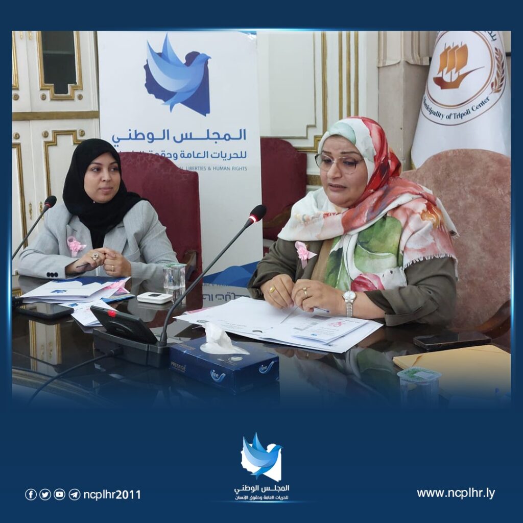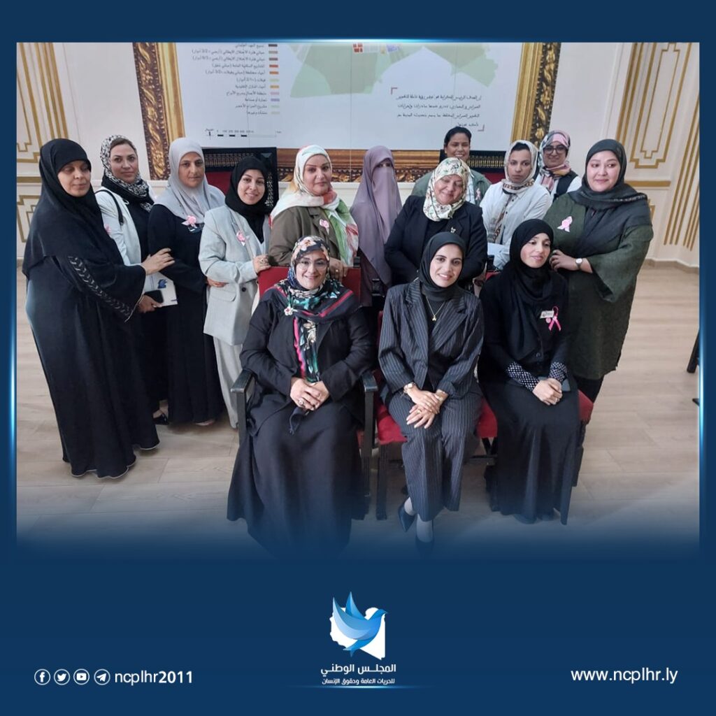 في إطار إحياء فعاليات الشهر الوردي للتوعية بسرطان الثدي، نظّمت إدارة المرأة والطفل بالمجلس الوطني للحريات وحقوق الإنسان صباح اليوم  الثلاثاء 21 أكتوبر 2025، جلسة توعوية بمقر بلدية طرابلس المركز، وذلك بالتعاون مع منظمة الاتحاد الليبي لمكافحة السرطان، في خطوة تؤكد الالتزام بحقوق المرأة في الصحة والحياة والكرامة، وفق ما تنص عليه المواثيق والاتفاقيات الدولية لحقوق الإنسان ومنظومة التشريعات الوطنية .