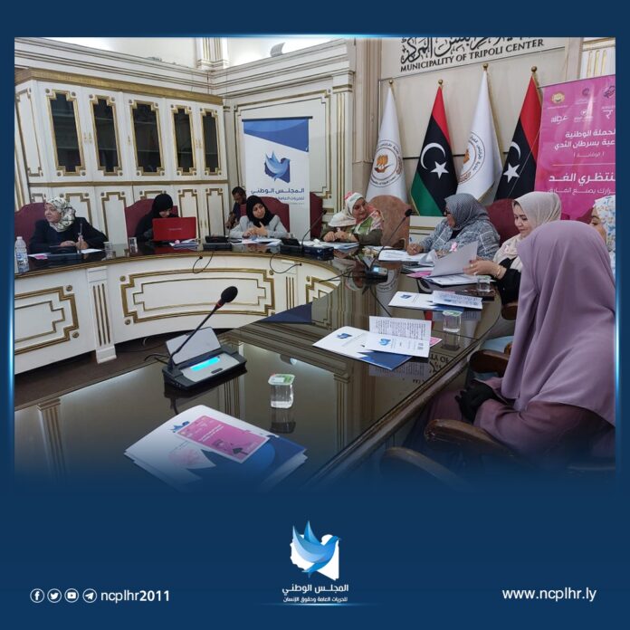في إطار إحياء فعاليات الشهر الوردي للتوعية بسرطان الثدي، نظّمت إدارة المرأة والطفل بالمجلس الوطني للحريات وحقوق الإنسان صباح اليوم  الثلاثاء 21 أكتوبر 2025، جلسة توعوية بمقر بلدية طرابلس المركز، وذلك بالتعاون مع منظمة الاتحاد الليبي لمكافحة السرطان، في خطوة تؤكد الالتزام بحقوق المرأة في الصحة والحياة والكرامة، وفق ما تنص عليه المواثيق والاتفاقيات الدولية لحقوق الإنسان ومنظومة التشريعات الوطنية .
