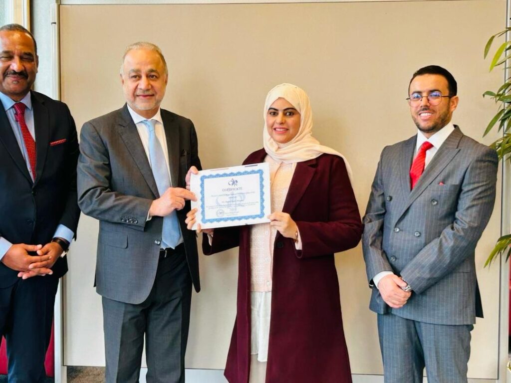 وعلى هامش الزيارة، شارك الأستاذ “عبدالمولي أبونتيشة” في الاحتفال الختامي للدورة التدريبية الخامسة التي نظمها معهد جنيف بمشاركة عدد من موظفي دولة سلطنة عُمان يمثلون مؤسسات وجهات معنية بحقوق الإنسان.