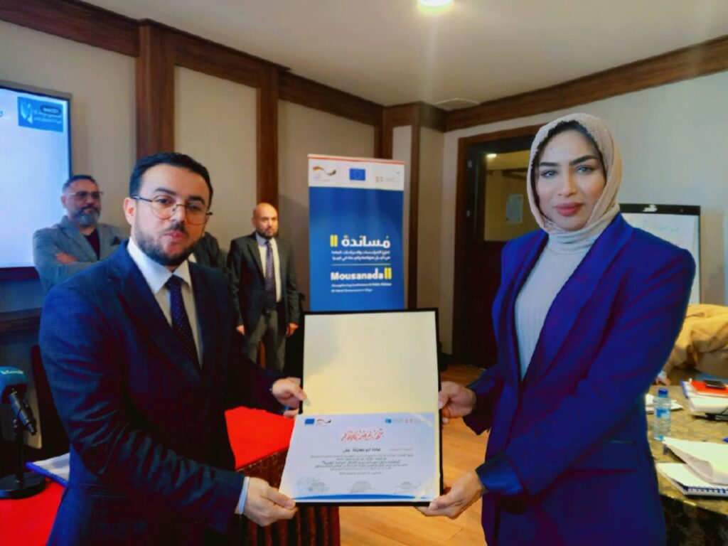 وأكدت الكلمات التي أُلقيت خلال الجلسة الختامية على الدور المحوري الذي يضطلع به المجلس الوطني للحريات وحقوق الإنسان بوصفه مؤسسة وطنية مستقلة تُعنى بتعزيز وحماية حقوق الإنسان في الدولة الليبية، مشيدا بالتقدم الملحوظ في تطوير العمل المؤسسي الحقوقي والالتزام بتبني أفضل الممارسات والمعايير الدولية، وفي ختام الفعاليات جرى توزيع شهادات المشاركة على جميع المشاركين.