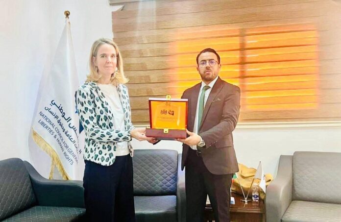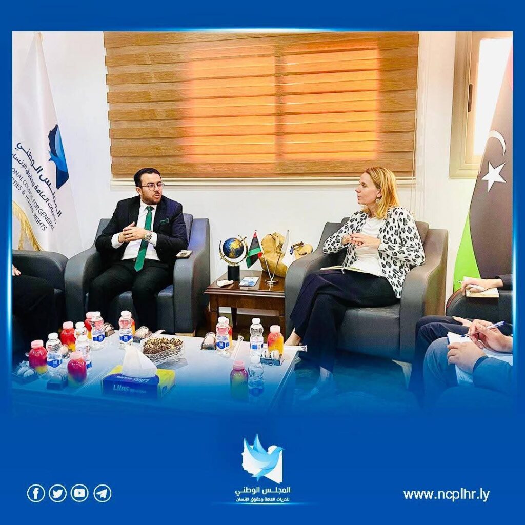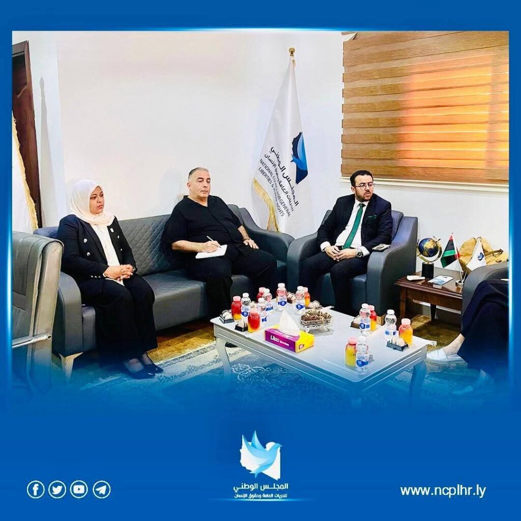 في إطار تعزيز الشراكات الدولية الداعمة لمسار حقوق الإنسان وبناء القدرات المؤسسية، استقبل الأستاذ ‘عبدالمولي رمضان أبونتيشة” المكلّف بتسيير أعمال المجلس الوطني للحريات وحقوق الإنسان، بمكتبه بديوان المجلس، نائبة سفير مملكة هولندا لدى ليبيا السيدة “هيلين بارتمانس” يرافقها السكرتيرة الأولى بالسفارة السيدة “يويلا بلانكستاين” مسؤولة ملف حقوق الإنسان بالسفارة، اليوم الثلاثاء 14 أبريل 2026 .